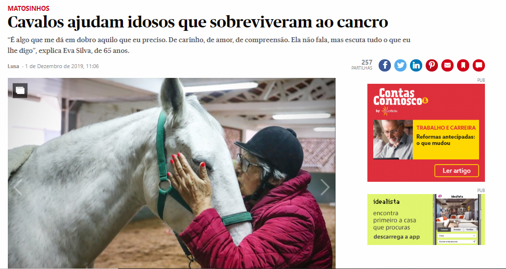 Projeto de equitação em Matosinhos, ajuda idosos que sobrevivem ao cancro, promovendo o aumento da sua qualidade de vida e trabalhando aspetos físicos e emocionais.