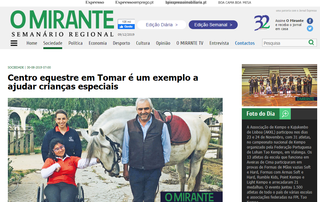 Centro equestre Vítor Rodrigues em Tomar é um exemplo a ajudar crianças especiais, este projeto nasceu da necessidade de um pai para ajudar a sua filha e expandiu-se devido às diversas solicitações de casos semelhantes. Esta notícia segue a história desta família e da criação do centro equestre.